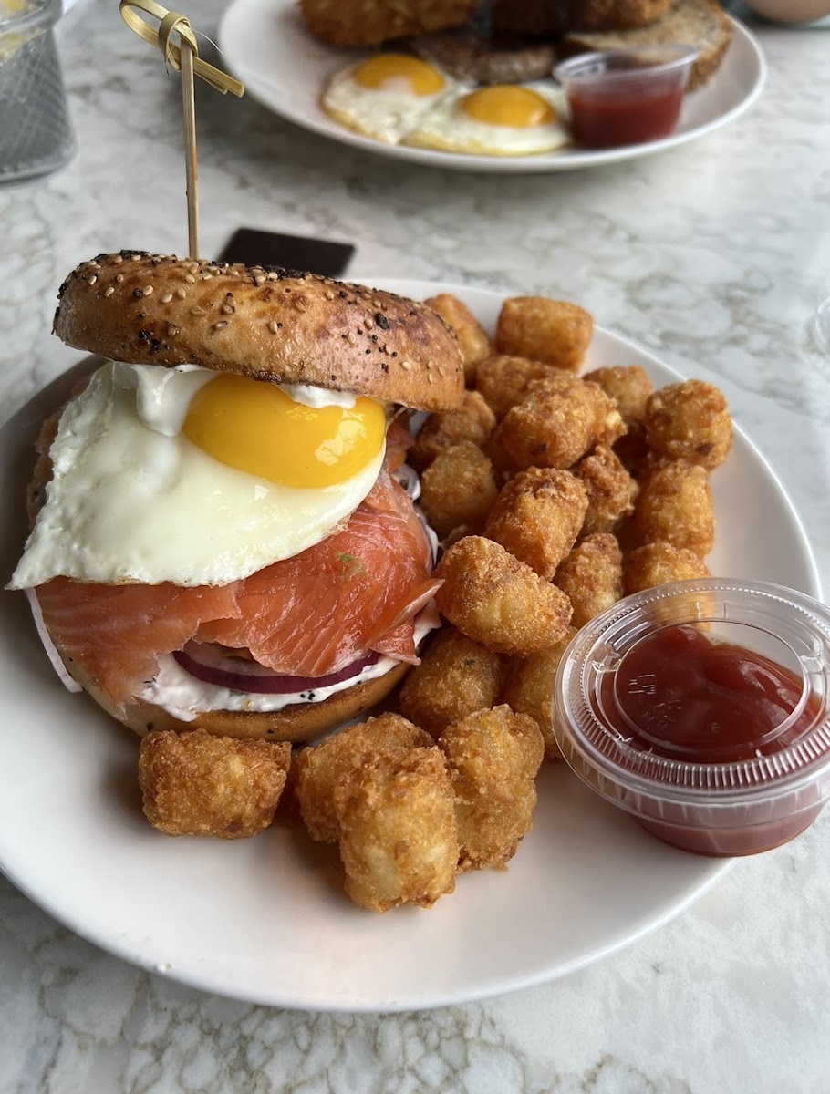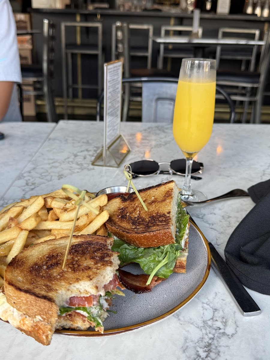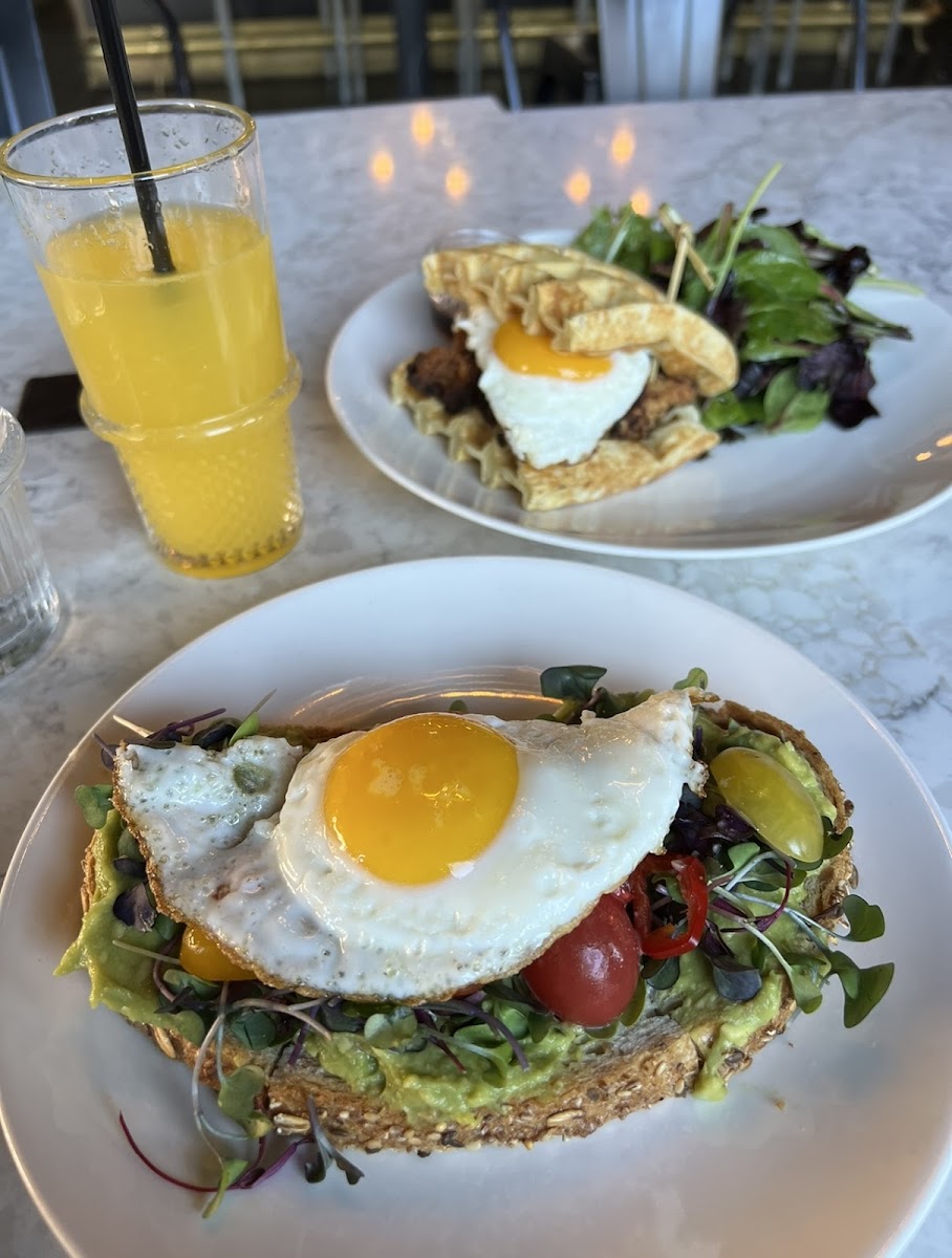 Step inside, and you'll be greeted by an inviting ambiance that combines rustic charm with modern aesthetics. The stunning architectural details—like oxidized sheet metal beams and chic light fixtures—set the stage for a memorable dining adventure. You can choose to enjoy your meal in the cozy indoor seating or take in the fresh air on the outdoor patio, making it an ideal setting for both sunny mornings and relaxed afternoons.